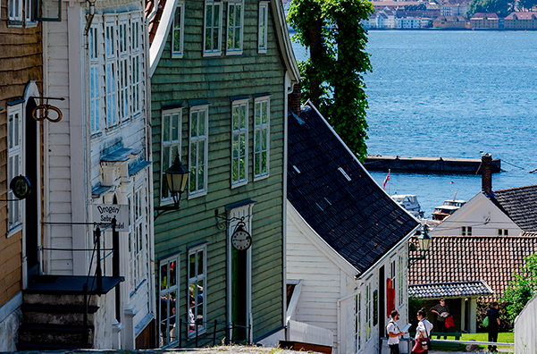 На набережной Брюгген когда-то проживали лучшие люди города. Сделавшие состояние на сушёной треске ганзейские купцы построили себе ряд разноцветных деревянных домиков с видом на фьорд и рыбный рынок. Сейчас в домиках уже не живут купцы, там живут рестораны и магазины со свитерами, шапками и магнитиками. Здесь же есть и музей Бергена, там можно посмотреть на археологические находки.