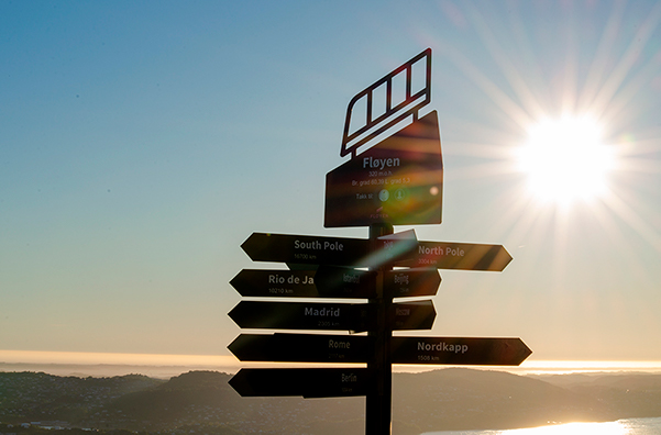 Проникнув наконец в моё временное пристанище в Бергене, я оставил вещи и решил осмотреть Берген с высоты. Лучший вид на город открывается с горы Флойен. Скорее всего, с других гор вокруг открывается вид в крайнем случае не хуже, но туда надо идти пешком. На мой взгляд, это несколько преуменьшает живописность. А вот на Флойен можно подняться на фуникулёре, и лучше всего делать это утром или вечером. Во-первых, закат или рассвет — это суперкруто. Во-вторых, стоять час в очереди — это не круто вообще.