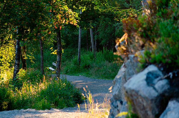 Вниз я пошёл пешком. Заблудиться невозможно, везде стоят деревянные указатели, поющие птички умиротворяют, а через деревья то и дело проглядывает город внизу. В самых красивых местах стоят скамейки, на них можно сидеть и восхищаться окружающей природой.