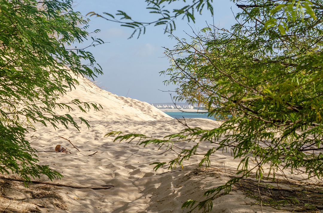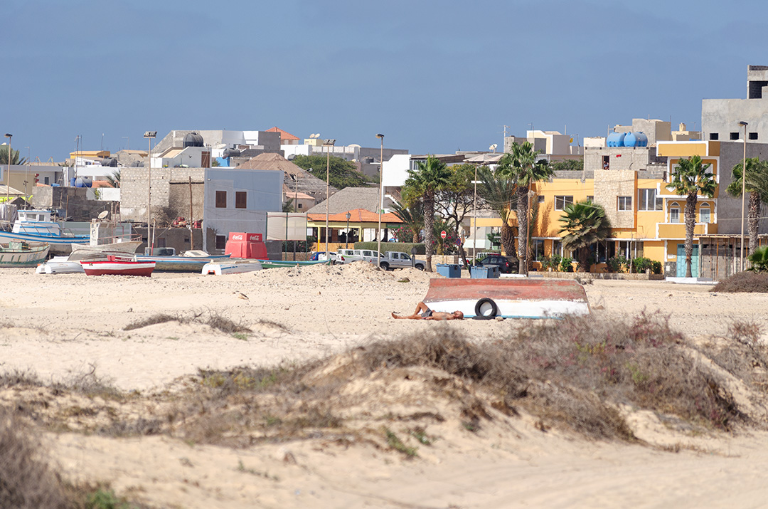 Солнце катится по наклонной, чтобы утопиться в теплом и неспокойном океане. Я сижу на берегу, и острые песчинки кусают мою спину — сильный ветер разгоняет их до космических скоростей. Забавно, что даже песок на Кабо-Верде появляется из-за океана: постоянный ветер приносит его из Сахары. За тысячелетия песка наметено довольно много, так что даже получились высокие дюны, с которых весь Сал-Рей, столица острова Боавишта, как на ладони.