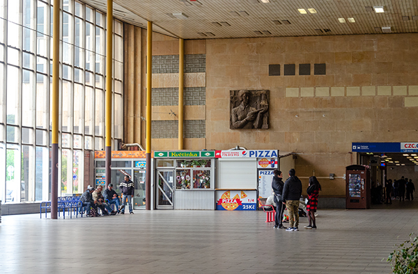 Получить по затылку и остаться без техники и денег в мои планы не входило, поэтому Ханов я не посетил, а доехал на трамвае до станции «Мост». Вокзал в городе очень большой, и он совершенно несоразмерен количеству пассажиров. Изнутри кажется, что большая часть его помещений закрыта и заколочена, а те, что используются, могли быть в разы меньше. Возможно, во времена Чехословакии здесь было намного больше пассажиров, но теперь эта гигантомания выглядит неуместной.