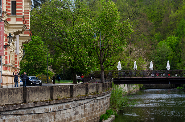 В размышлениях о социалистическом строительстве прошли часы до станции «Карловы Вары». Город каким-то образом стал водолечебной меккой любого обеспеченного русского человека. По некоторым источникам, до сих пор 80% недвижимости в городе принадлежит гражданам России, а практически все вывески и объявления продублированы на русском. И, разумеется, повсюду слышна русская речь. Не удивлюсь, если на гипотетическом референдуме 146% жителей Карловых Вар выскажутся за то, чтобы Калининград перестал быть самым западным регионом России.