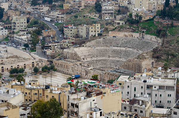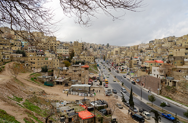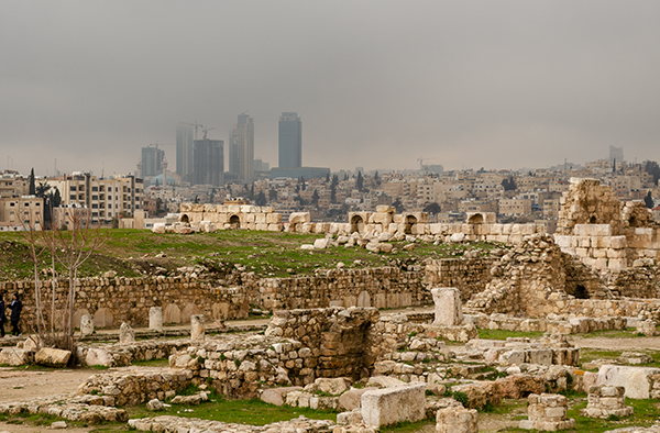 Амману несколько тысяч лет и, глядя на него с крепостного холма, невольно думаешь, что, меняя названия (от ассирийского Рабат-Аммона до греческой Филадельфии и современного мусульманского Аммана), не слишком он за эти годы изменился. До горизонта всё залеплено кремовыми бетонными коробками — ведь почти двухмиллионному (а вместе с пригородами — четырёхмиллионному) населению надо где-то жить. А ещё нужно как-то перемещаться между холмами, поэтому звук Аммана — это какофония клаксонов.