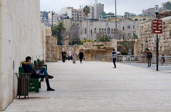 Суматошный Амман остаётся за забором, а здесь люди сидят на лавочках и гладят прогуливающихся котиков. Дети молотят потёртый мяч в стену музея народных традиций. Десяток человек в униформе драят площадь перед амфитеатром водой с моющим средством. На них неприязненно смотрят торговцы светящимися игрушками, чупа-чупсами и лепёшками, ведь их сгоняют с прибыльных ступенек.