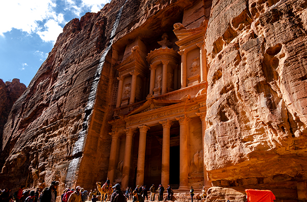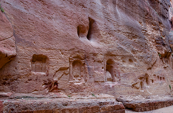 Наконец слышатся охи, ахи и вздохи – и взгляду открывается Сокровищница, первое сооружение, которое видят прибывшие в древний город набатеев. Строго говоря, мы не знаем, что за здание скрывается за высеченным в скале фасадом. Скорее всего, это была усыпальница богатой набатейской семьи. Сокровищницей (или, по-арабски, «Аль-Казной») её назвали значительно позже.