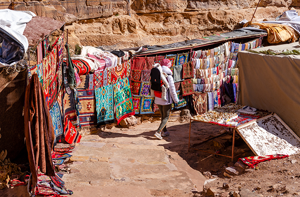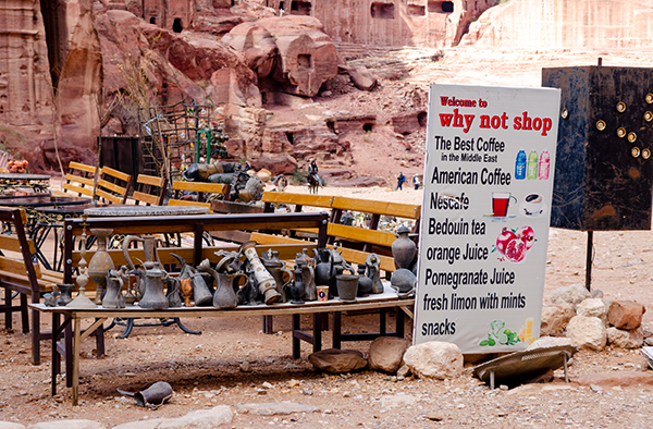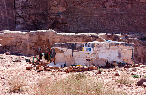 Чем дальше от хоженых троп, тем скромнее бедуинские лавки. Самые бедные кособоки, слеплены из остатков непонятно чего и немного качаются от порывов ветра. Интересно, есть ли внутри Петры иерархия бедуинских семей? Как исторически сложилось, что кто-то занимает доходное место среди туристических толп, а кто-то перебивается только самыми выносливыми и любопытными пешеходами?