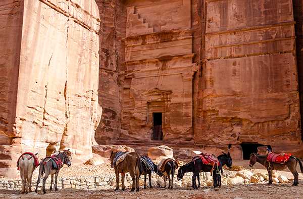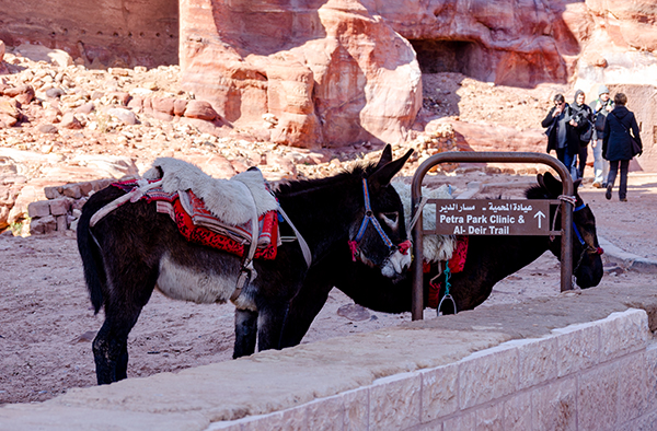 Путь через Петру — это около четырёх километров в одну сторону до монастыря Ад-Деир. Но за сорок динар в обе стороны можно посадить своё тело на слегка замученного осла, ведомого бодрым бедуином, и доехать до монастыря в скале чуть-чуть быстрее и не осквернив ног красными песками.