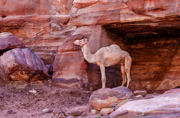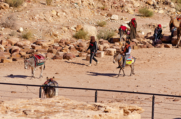 Солнце склоняется (здесь светает в 6 утра, но и темнеть начинает в 16, поэтому зимой Петра работает только до 17) и окрашивает древние постройки в прекрасные розоватые цвета. Бедуины становятся спокойнее и предлагают осликов пореже (тем более что уставшие путники берут их «такси» значительно чаще). Я замечаю Абдуллу, который по-прежнему с тремя ослами без пассажиров.