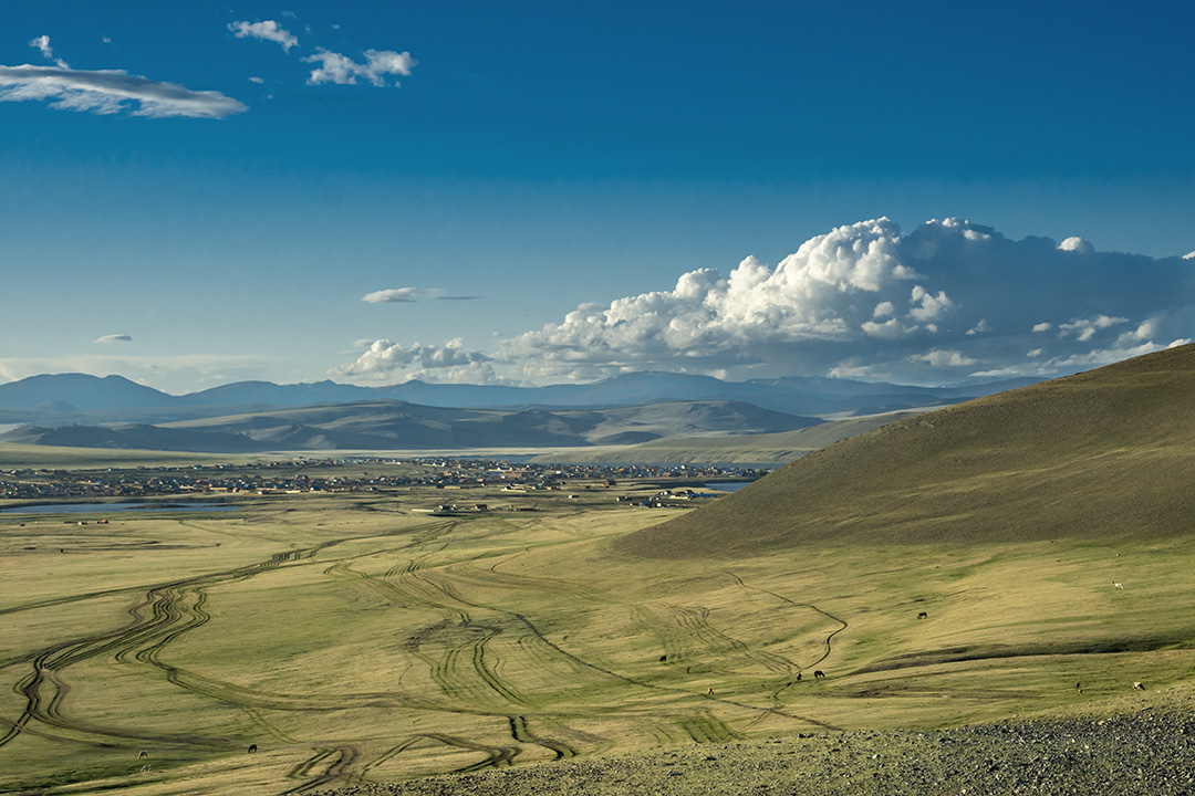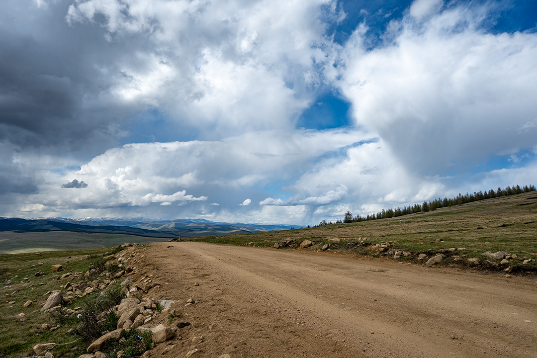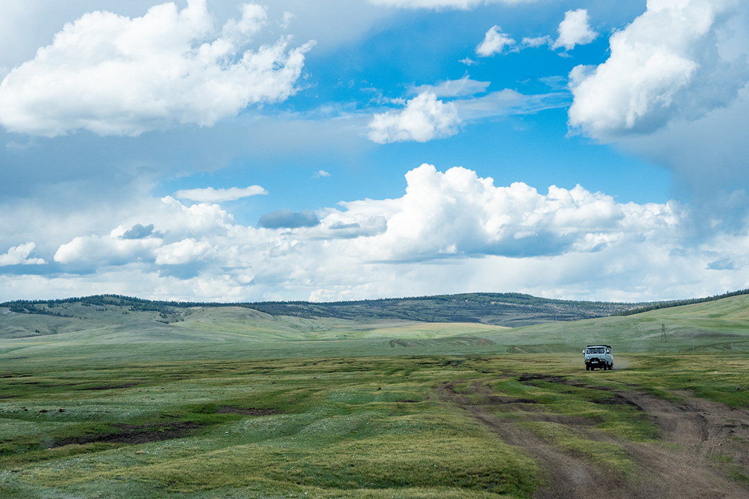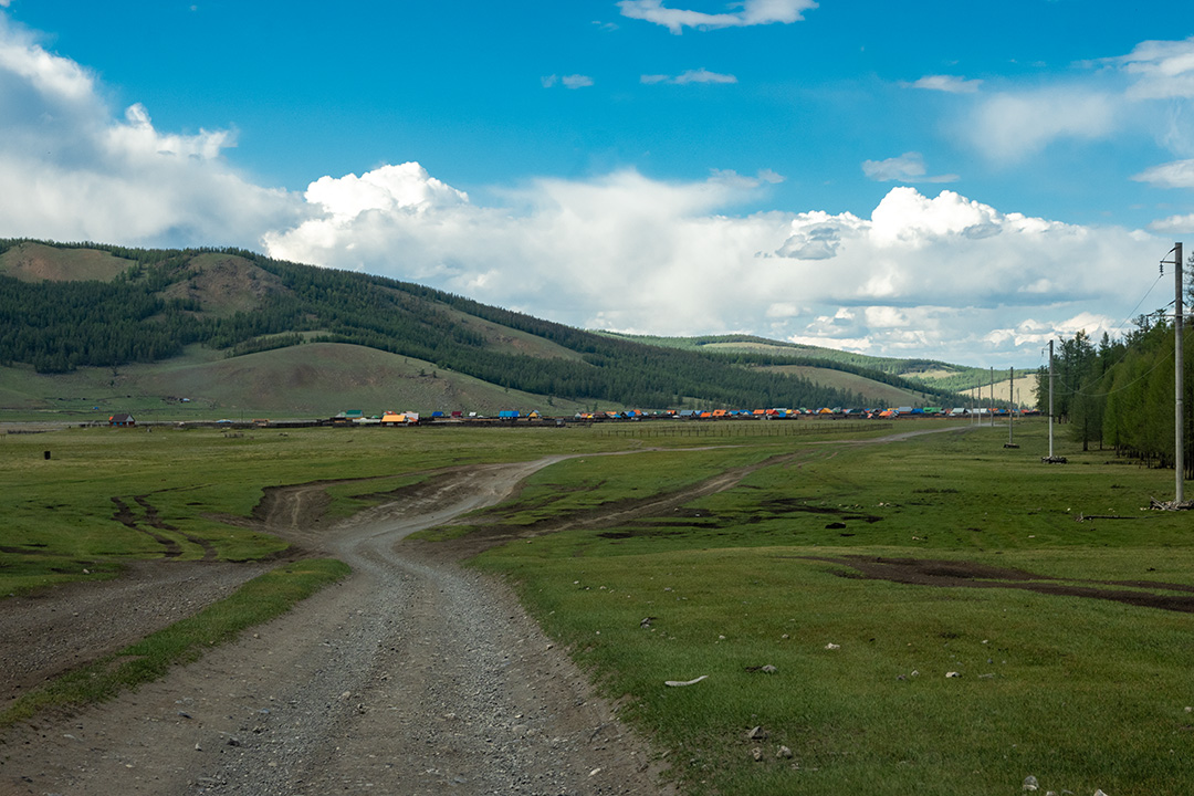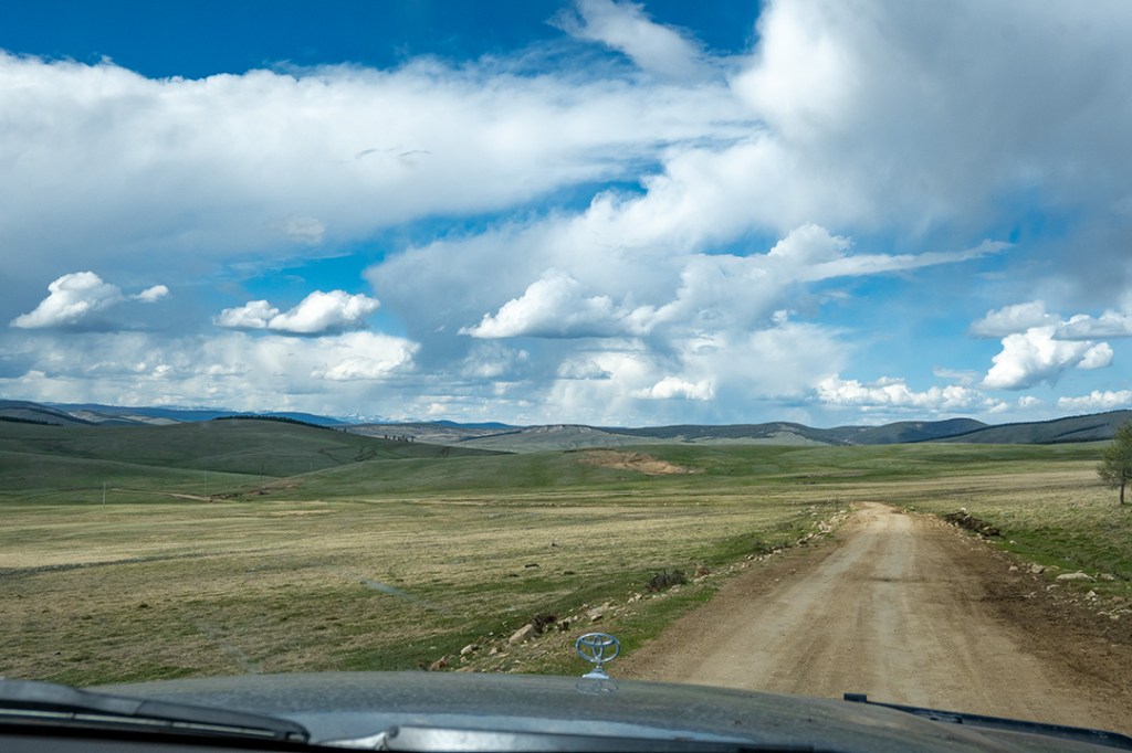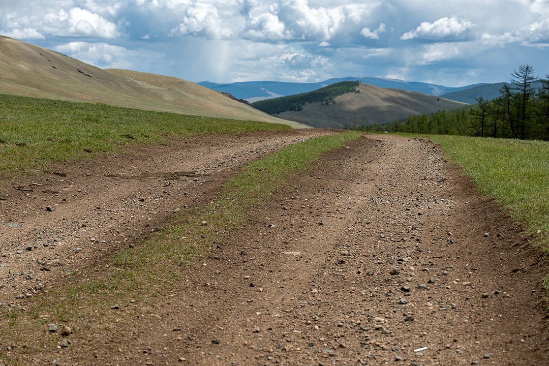 Чувствую себя немного преступником, пока мы мчимся по дороге на север. В какой-то, на мой взгляд, совершенно рандомный момент, Олсен уверенно сворачивает с асфальта вправо. Здесь начинается дорога на Цагааннуур. Впрочем, вполне вероятно, что она начинается практически в любом месте в пределах нескольких километров, потому что дороги-то никакой нет. Мы просто съезжаем в чистое поле, но Олсен уверенно держит курс на запад. В Монголии в большинстве случаев нет дорог — есть только направления.