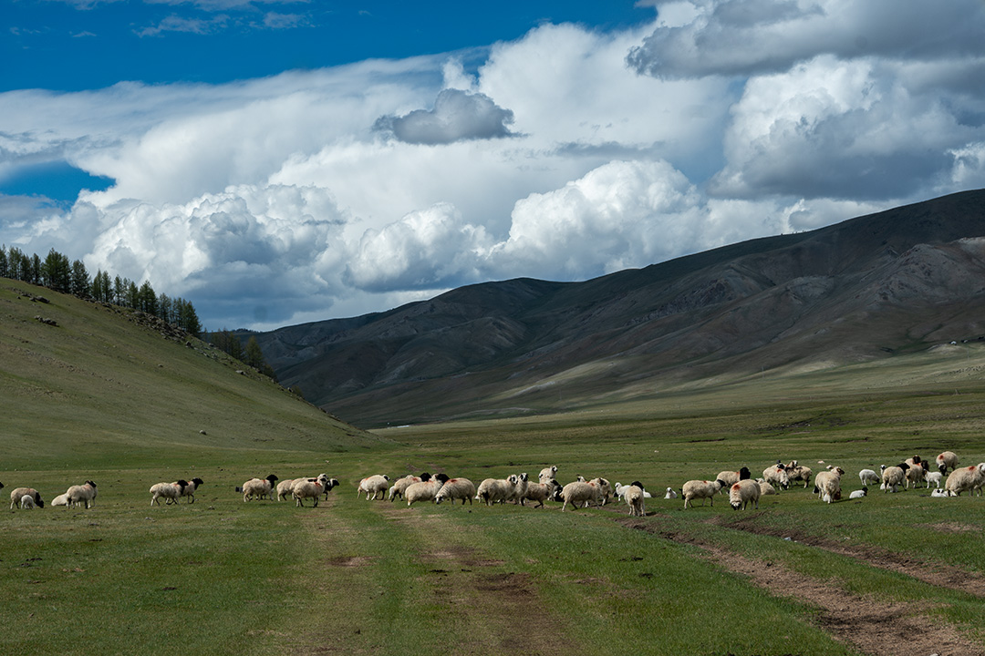 Утомительность дороги компенсируют невероятной красоты пейзажи. Мы взбираемся на горные перевалы, видя впереди вершины, за которые зацепились дождевые тучи, а затем смело несемся вниз, подскакивая на ухабах и разгоняя клаксоном мирно пасущихся овечек и яков. Мостов почти нигде нет — и кристально прозрачные речки приходится переезжать вброд. Каждые пару часов останавливаемся, чтобы немного передохнуть и размяться. Осваиваю правило монгольского туалета: отойти десяток шагов от транспортного средства и развернутся лицом в сторону гор. В кустах здесь не слабятся не только командиры.
