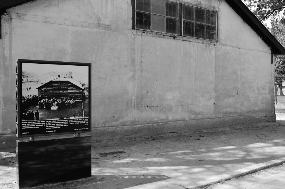 В зарубежной литературе принято называть лагерь согласно немецкой фонетике — Аушвиц, чтобы отличать от названия польского города ОсвенцимаЛагерь состоял из трех частей — Аушвиц I, Аушвиц II и Аушвиц III. Первый был основан в 1940 году и впоследствии стал административным центром всего комплекса. Одноэтажные здания польского военного лагеря были достроены до второго этажа, и в них устроили бараки для заключенных. Здесь, отдельно от остальных, содержались и советские военнопленныеВсех поляков с прилегающей территории выселили, а сам лагерь обнесли несколько рядами колючей проволоки, по которой пустили электрический токМногие заключенные, не выдержив условий содержания в лагере, совершали самоубийство, бросаясь на колючую проволоку под током. Некоторых еще на подходе к забору расстреливала охранаНа этом месте играл составленный из заключенных лагерный оркестрУ стены между блоками 10 и 11 расстреливали провинившихся. Блок № 11 — лагерная тюрьма, или «Блок смерти». Здесь раз в два или три месяца заседал чрезвычайный суд, приговаривавший заключенных к смертной казни. В том же блоке наказывали нарушителей лагерного режима. Обычно их на всю ночью ставили по четыре человека в маленькую камеру размером 90 х 90 см, в которой нельзя было даже сесть. Практиковались также методы медленного убийства: например помещение в герметичную камеру, в которой человек умирал от недостатка кислорода, или голодная смерть. В подвале этого же блока на советских военнопленных по приказу заместителя коменданта Аушвица Карла Фрича был впервые испытан газ Циклон Б. Хотя смерть не была мгновенной и некоторых узников пришлось добивать, опыт признали успешным и вскоре стали практиковать для массовых убийствВ том же дворе, что и расстрельная стена, находятся балки с крюками. Людей, вывернув им руки за спиной, подвешивали к этим крюкам и оставляли умиратьНа площади, где проводились ежедневные построения, стояли виселицы для публичных казней и устрашения узниковВ этой будке в случае плохой погоды сидел офицер СС, ответственный за перекличку. Если цифры не сходились, перекличку устраивали еще раз. Так происходило в любую погодуЭта «больница» не предназначалась для медицинской помощи. Здесь отбирали узников, которые больше не могли работать, чтобы проводить над ними эксперименты, которые всегда заканчивались либо смертью, либо тяжелыми увечьямиБагаж прибывал отдельно от узников. Чтобы люди верили, что действительно просто переезжают на новое место, все чемоданы велели подписывать. На деле же вещи прибывших сразу же отправляли на склад, где доставали всё ценное, а остальное выбрасывали. В это время зондеркоманда вела очередную партию жертв в газовую камеруВ газовую камеру в Аушвице I перестроили овощехранилище. Сразу же рядом оборудовали крематорий. Поскольку солдаты СС психологически не выдерживали этой работы, то из числа наиболее физически крепких узников была образована зондеркоманда. В ее обязанности входило сопровождение прибывших людей на уничтожение, а затем сжигание трупов. Поскольку Циклон Б не убивает мгновенно, на бетонных стенах крематория можно увидеть борозды, которые заключенные процарапали в агонииКогда партии стали прибывать со всей Европы, газовой камеры Аушвица I оказалось недостаточно для эффективного уничтожения. Был построен 